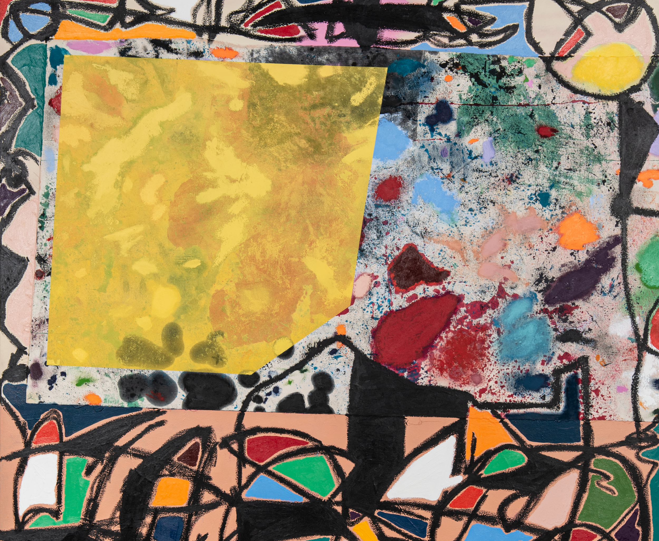 Brown started as a print maker, depicting colourful illustrations of mundane objects from his surrounding within the daily life, but gradually evolved to painting and developed a new language of abstraction. While experimenting with different textures, colours and shapes, the artist tries to lose control over the work, resulting in a unique outcome. David lain Brown starts from one element and progresses freely with many layers and a variety of paint media, not only he adds materials to the canvas, in some areas Brown deconstructs his own work to give more space to the underlying structures. Every layer is as important as the last layer since it leaves a trail of narrative through the creation process. Building up a depth of layers and textures Brown’s work aims to tempt the view in, to look closer at the work.