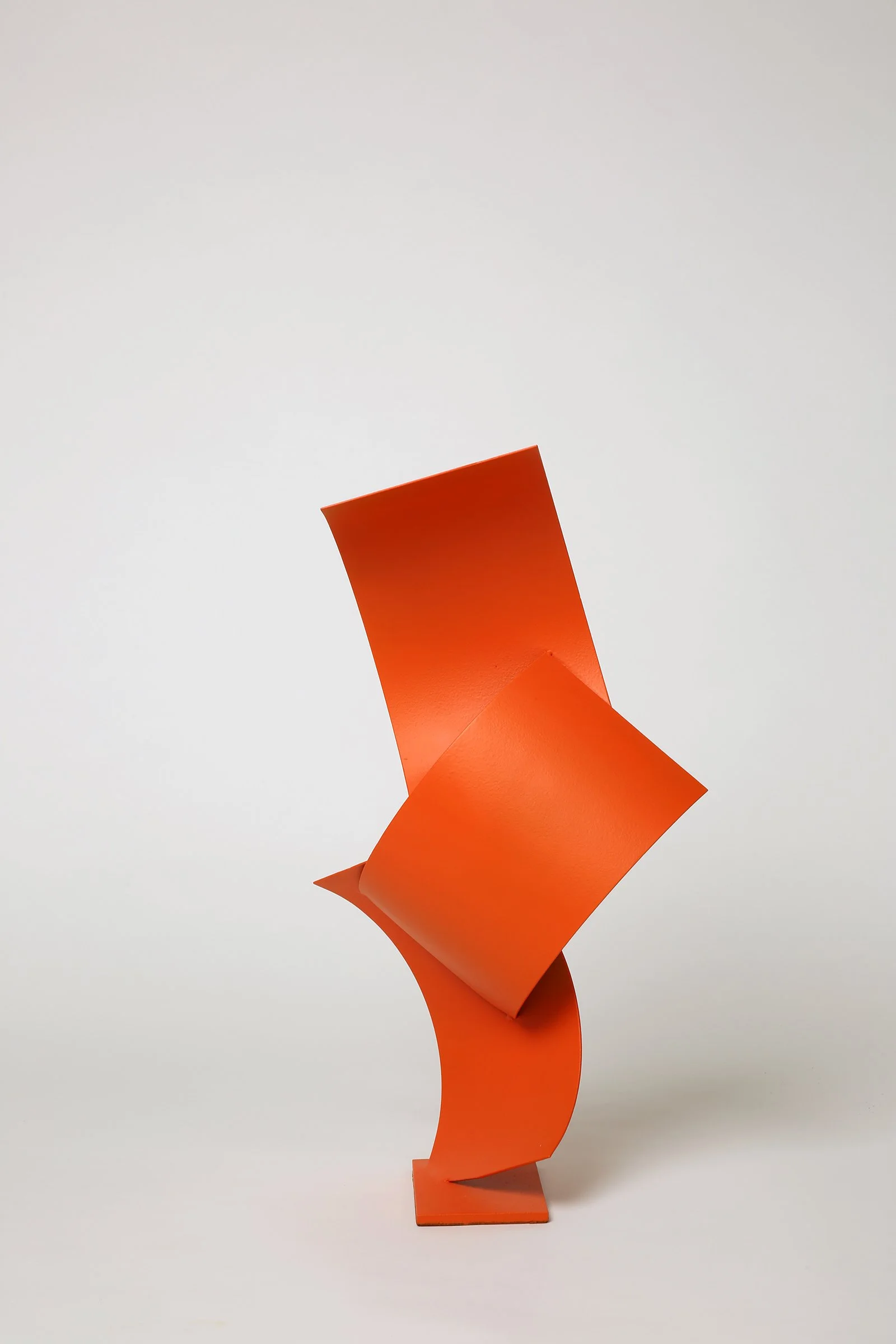 Gareth’s sculptures are heavily influenced by “Googie” architecture, a West Coast American design style originating in post-World War II commercial buildings. Popularized during the 1950s and 1960s, Googie architecture is known for its futuristic, eye-catching designs, characterized by flowing lines, abstract shapes, upswept roofs, and bold use of color.