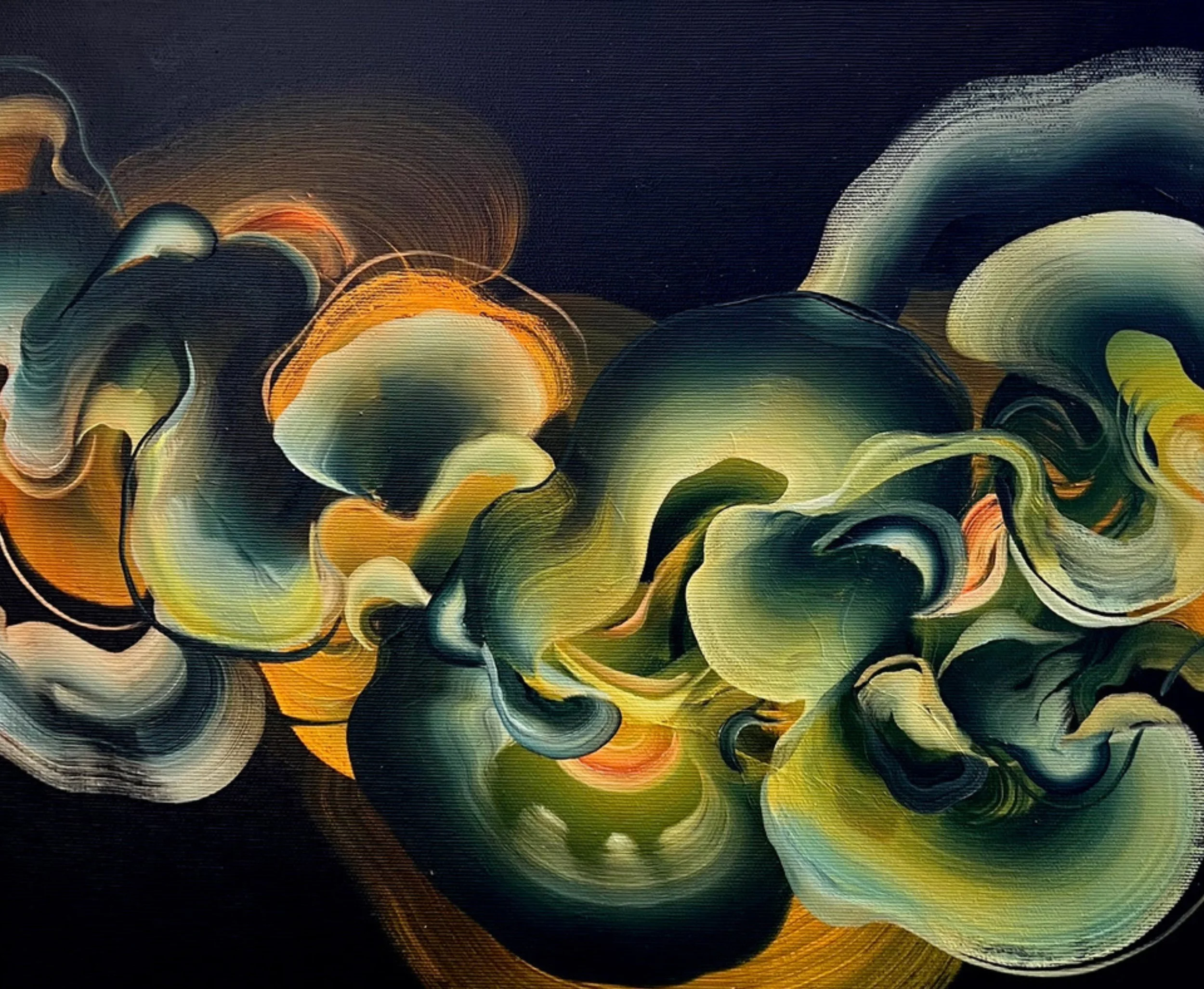 She developed an early fascination with Eastern Philosophy from her Serbian mother, a Religion and Philosophy teacher. Having grown up as one of 8 children, art acted as an escape for her. Originally trained in scenic painting and theatre design, she translates forms from nature into vibrant abstract paintings, bringing the viewer into a place which exists in the fringes of the visible landscape.